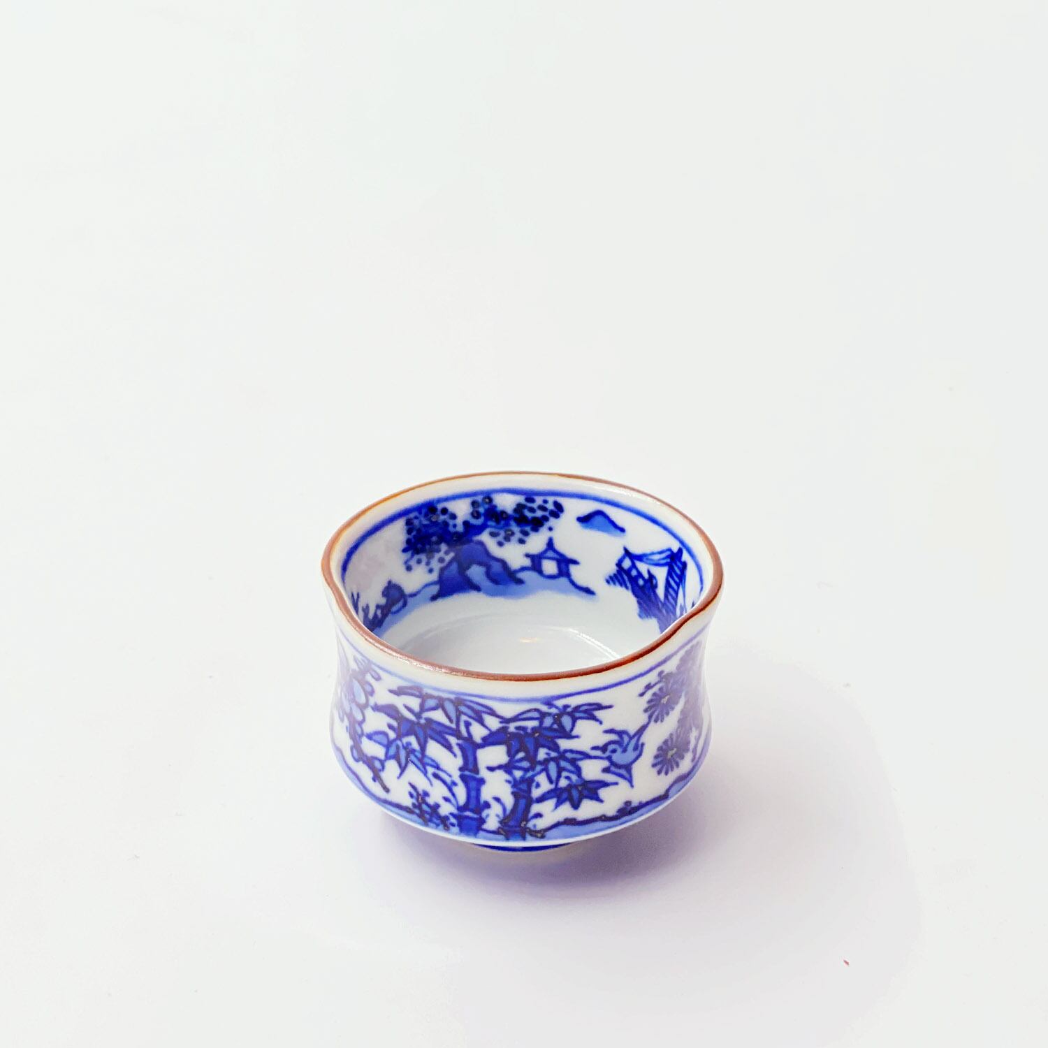 This is a Blue & white Shonzui style sake cup. Pine, bamboo, and plum, which are traditional Japanese auspicious items, are drawn.